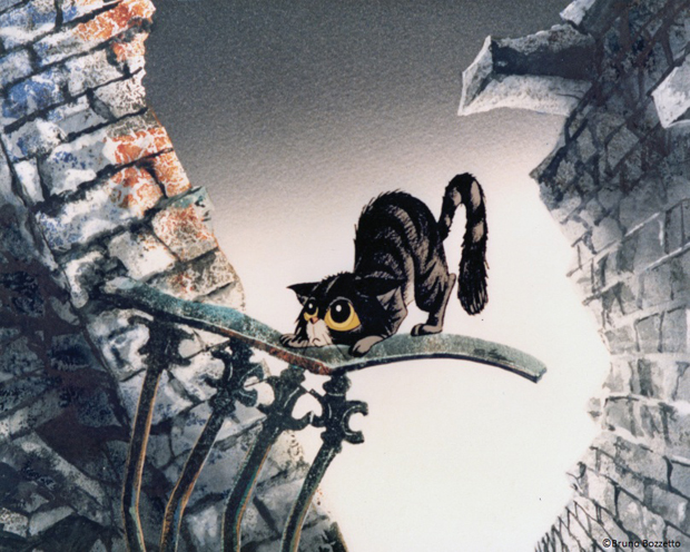 Non è neanche solo perché quando ho visto per la prima volta al cinema “Allegro, non troppo” sono rimasta per tutta la durata immobile nella poltroncina e come ipnotizzata dall’armonia perfetta tra suoni e immagini in movimento. Ho pianto, con il Valzer triste di Sibelius, sulla desolazione del gattino che sogna un passato perduto per sempre, fatto delle poltrone del salotto buono e del tepore del caminetto e delle carezze, ispirato, come stasera ho scoperto, a un gatto vero, che era stato di Valeria, chiamata in famiglia Vally, cioè la moglie di Bruno Bozzetto.